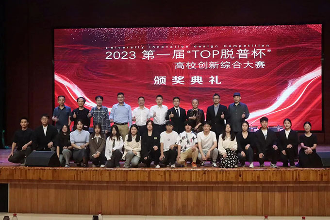 其后,脱普集团新零售洪伟伦副总裁的致辞拉开了太湖脱普产业学院揭牌仪式暨“脱普杯”高校创新综合大赛颁奖典礼的序幕。脱普集团成立至今已有70年历史。自2021年与艺术学院合作以来,已经开展了共育人才、产品创新、包装设计、视频宣传、直播营销等多个领域的合作。作为无锡市台资企业的龙头代表,校企双方通过坚持创新驱动发展,激发人才创新活力,加快企业数字化发展,相信双方的合作定能在这一伟大目标的驱动下,共同推进彼此在课程设置、人才培养、协同发展等领域更广泛深度的融合,真正实现校企协同和谐发展,实现高校与企业之间的双赢。最后,洪总还勉励同学们自强不息、探索创新,以更强大的实力迎接世界未有之大变局。