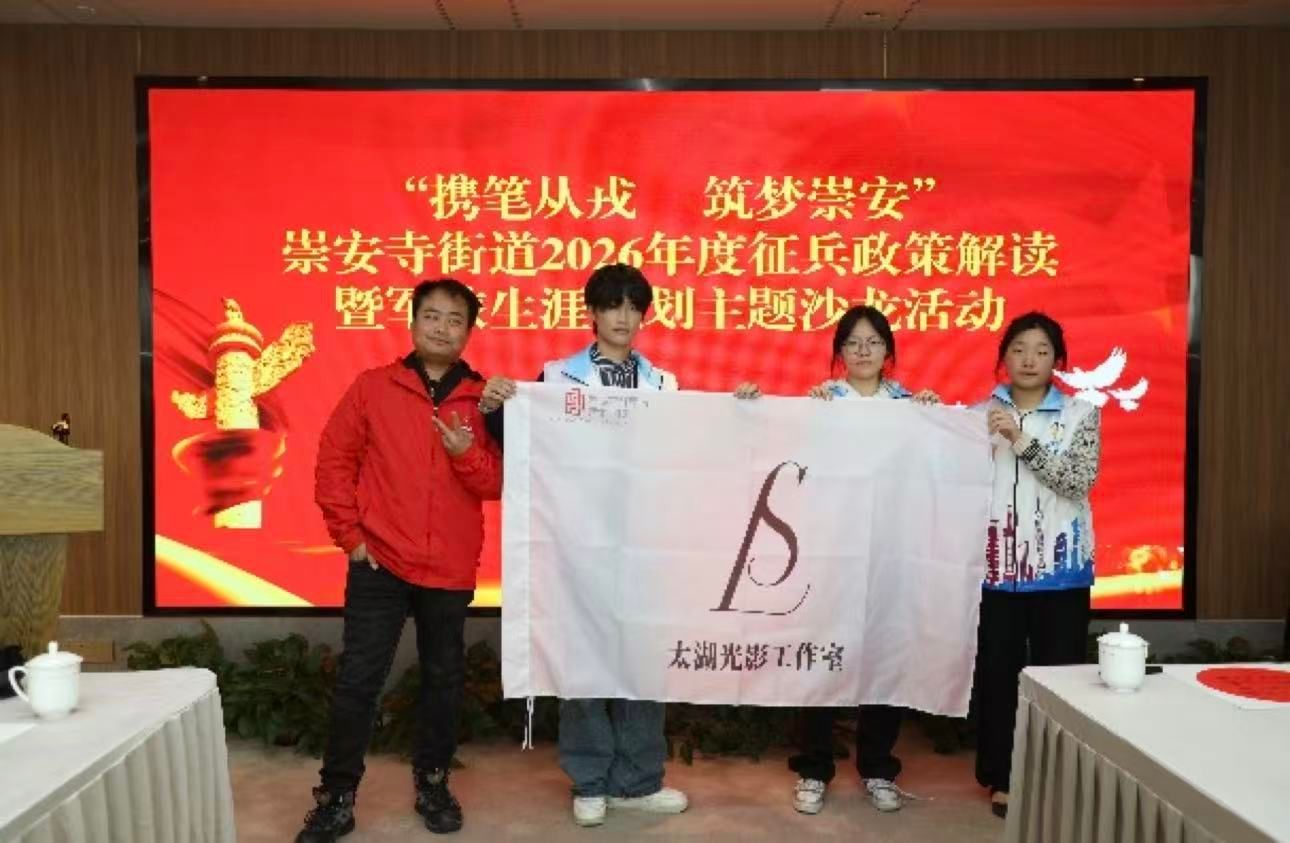 为深入宣传2026年1月1日起施行的《江苏省征兵工作条例》,高标准高质量推进年度征兵工作,崇安寺街道在恒隆荟客厅成功举办征兵政策解读暨军旅生涯规划主题沙龙。太湖光影工作室积极响应、主动担当,组织多名成员全程参与本次活动的现场拍摄与视频制作,用专业镜头记录活动精彩瞬间与宣讲实况,以优质影像素材助力崇安寺街道征兵宣传工作,全方位展现征兵工作风采。
