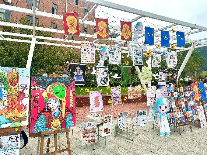 活动现场,工作室成员们精心布置了多个展示区域,集中呈现了来自艺术学院同学们的优秀平面设计与立体设计作品等。这些作品主题丰富,涵盖历史人物、非遗文化、文旅宣传等多个方面。从抽象造型到实用设计,每一件作品都凝聚着创作者的心血与思考,既展现了同学们扎实的专业功底,也体现了新时代大学生勤于思考、勇于创新的学习态度。同时,我们的文创产品由工作室自主设计,以工作室专属IP“艺小创”为核心创作而成,从印有艺小创形象的贴纸、明信片到充满创意的艺小创徽章和钥匙扣 。每一件作品都凝聚着工作室成员的创作心血,传递艺术服务生活的理念,充分彰显了“自强不息,经世致用”的校训学风。