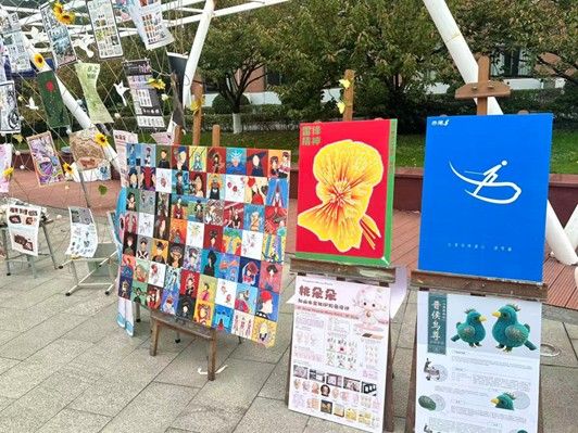 活动期间,现场人气高涨,同学们纷纷驻足欣赏,对于所展示的作品,工作室安排了专门的讲解员为大家进行讲解。同学们在现场通过讲解员的介绍相互交流设计思路与创作心得,浓厚的艺术气息与学习热情在广场上蔓延,在互动中实现知识的共享与思维的碰撞。更值得一提的是,艺术学院党委副书记和副院长也亲临活动现场,仔细参观每一件展示作品,对同学们的作品以及布展作出肯定并给出建议。同时领导与工作室成员亲切交流,鼓励大家以艺术为纽带,进一步带动身边同学投身专业学习,以创新实践助力优良学风建设。