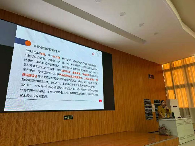 随后,蒋老师娓娓道来产品设计系的历史积淀与发展愿景。立足无锡这座充满设计气息的城市,专业以轻工产业为培养重心,致力于培养能在信息科技、家电家居、文化创意等领域大展身手的综合型设计人才。五大研究方向各具魅力:既有承载江南文脉的文化创意设计,也有体现人文关怀的特殊人群设计;既有融合古今的家具家居设计,也有面向未来的智能产品设计,还有注重实用性的3C产品与交通工具设计。这些方向共同构筑了一个完整的设计教育体系,等待着新生们去探索、去发现。同时为同学们展示了大量学院的实训成果以及获奖情况,鼓励学生去到实践中创造与学习。