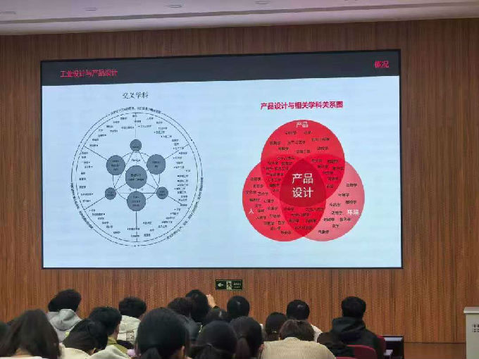 许教授首先从设计学科的发展脉络切入,语重心长地提醒在座同学:“你们未来的竞争对手,不仅来自产品设计专业,更来自更广阔的工业设计领域。这意味着你们必须付出加倍的努力,才能在激烈的竞争中脱颖而出。”许教授以自身经历为例,建议同学们:既要夯实专业基础,秉持格物致知的学习态度;又要勇于实践,通过参加竞赛、项目不断提升设计素养。