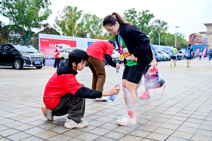 赛道上,跑者们用汗水诠释挑战自我、超越极限的马拉松精神。赛道旁,YI行志愿者们始终坚守岗位,轮批轮岗,为参赛人员送去源源不断的贴心服务。赛道外,报名处的志愿者们不顾雨水浸湿衣衫,依旧专注且耐心地解答选手们对赛事规则的种种疑问,对于物资存放区,志愿者们一丝不苟地仔细核对、精心整理参赛装备,以无私奉献与勇于担当的精神,为这场马拉松赛事筑牢了坚不可摧的保障。