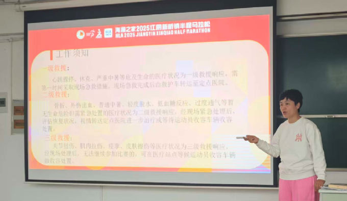 在马拉松志愿服务筹备阶段,为确保志愿服务质量、保障参赛选手安全,YI行志愿者们提前进行专业急救医疗培训。培训过程中,志愿者们全神贯注认真聆听急救专家讲解各类突发状况的应对方法与技巧,从常见的擦伤、扭伤处理,到较为紧急的中暑、休克等急救措施,为赛事中面对突发状况时能够迅速、有效地展开救助。