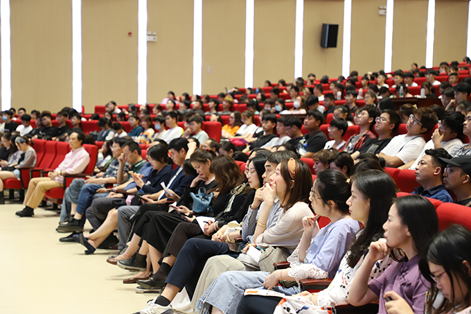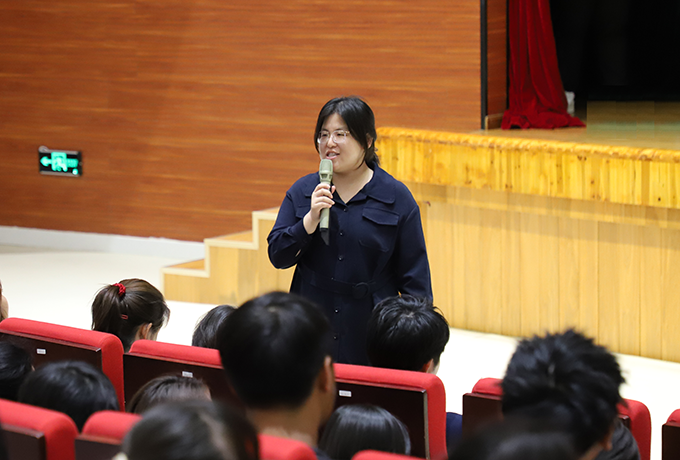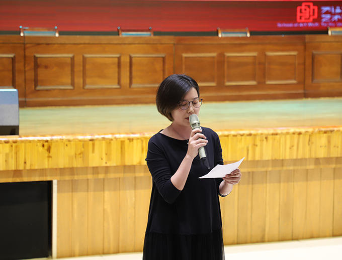 会议第三项议程,教师代表产品设计系主任蒋满群副教授进行发言,他结合自己在太湖多年的教学经验对新生谆谆教导。蒋满群老师希望同学们能够牢记“自强不息,经世致用”的校训,在大学生活里对学习全情投入、做到稳扎稳打、学有所长;做到自律与坚持,树立自己的目标并付诸实践,一步一个脚印奋斗到成功。