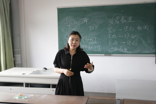 第六位是音乐专业的张晓琰老师。张老师首先给我们播放了一段动听的《踏雪寻梅》。接着介绍了音乐大师黄自以及他写的《思乡》、《春思曲》、《玫瑰三愿》三首歌的歌词,并且聆听了这三首歌曲。张老师在课堂上询问了同学们歌词中表达出的思想与情感,深化了同学们对于词曲的认识。