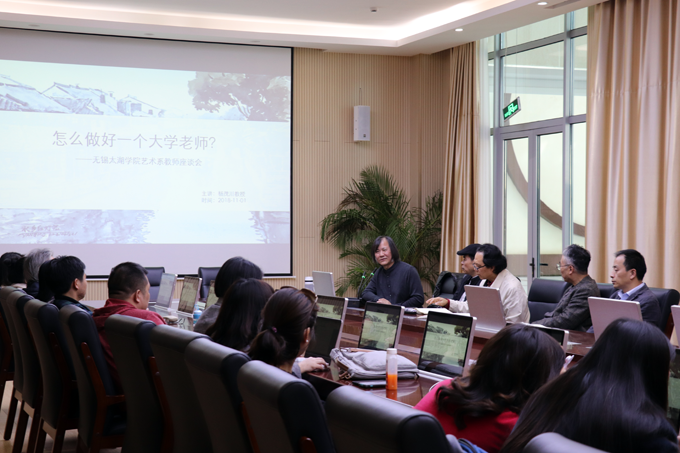 本网讯 11月1日下午2点,艺术学院在工科实验楼一楼会议室举办 “怎样做好一个合格的大学老师?”专题讲座。讲座由江南大学设计学院杨茂川教授主讲,艺术学院院长张锡,副院长李方明、朱宗明、朱宁以及学院全体教职员工参加本次教学质量提升活动。