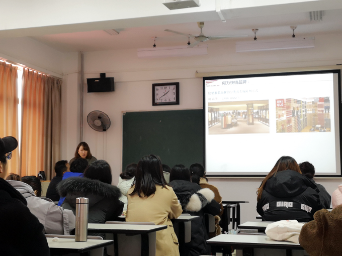 本网讯 2019年3月3日下午,在六号楼402,艺术学院有幸邀请到2009届优秀校友——优衣库大中华区陈列设计师高梦楚,为师生们带来一场主题为“快销服装品牌运作及卖场视觉陈列”的精彩讲座。本次活动中,高学姐为我们讲解了在陈列中的几种法则,并给出了很多优秀案例,其中包括但不限优衣库近几年的大量优秀陈列案例。