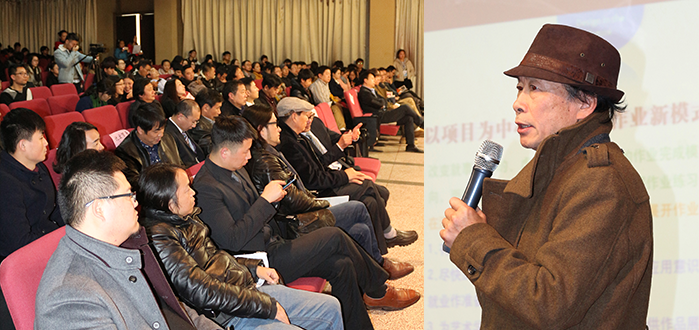 王心如副校长致辞,他从近日教育部、国家发改委、财政部联合发布的《关于引导部分地方普通本科高校向应用型转变的指导意见》出发,肯定了艺术学院教改方向的先进性和积极性,对于“产学研联盟”的意义给予高度评价并代表学校支持这项活动,期待有圆满的实验成果。