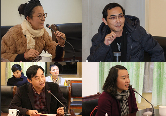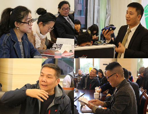 茶歇期间,嘉宾们参观了美术系《凝固的诗歌》教师油画展,代表们被“如诗如歌、光色交融”的高水准画作深深吸引,赞不绝口。16:00研讨会在六号楼二楼会议室准时开始。会议由周敏宁秘书长主持,介绍了实验中心6个教学实训室和10个大师、教授工作室群的基本组成和工作方式,这种教学实践模式吸引了联盟机构各位代表,他们纷纷抛出橄榄枝,表示愿意合作全力支持产学研项目的积极开展和实训基地的推动。