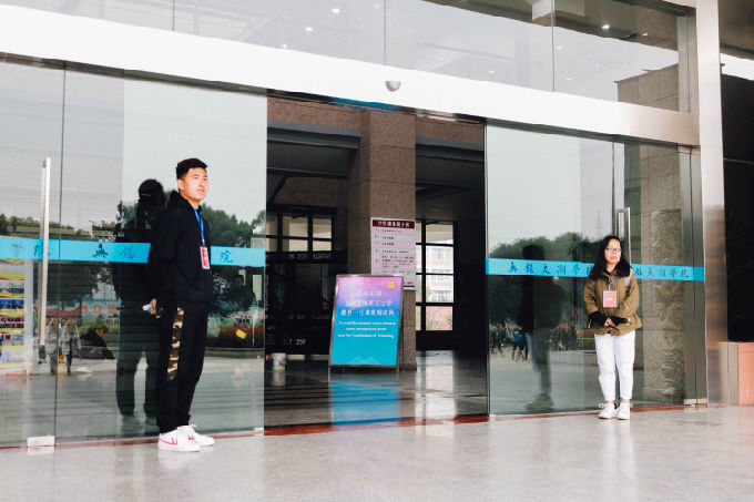 早晨7:40,当天的值班同学就已准备就绪并做好签到工作,佩戴好工作牌,站在了各自的坚守的岗位上,一丝不苟,虽然值班时间只有短短的半小时,但每位同学依旧表现出来的是以身作则,尽心尽力的工作态度,以最饱满的精神面貌迎接工作。