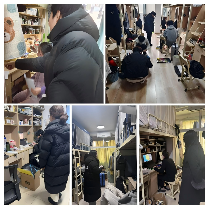 走访期间,学院书记和辅导员与学生展开了深入交流,详细询问了大家的寒假生活情况,了解同学们在假期中的学习、实践及生活体验,鼓励同学们迅速调整节奏、制定明确目标、加强身体锻炼,以饱满的精神状态迎接新学期的学习生活。同时,老师们还就宿舍消防安全、用电安全、卫生状况以及反诈安全等方面进行了细致叮嘱,希望同学们共同维护好宿舍这个温馨的空间,同时也要严格遵守学校的各项管理规定,确保生活安全有序。