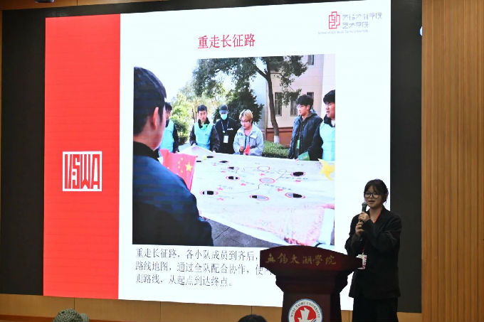 游戏点位主讲人徐佳薇同学为志愿者们详细介绍新生徒步定向赛的规则、注意事项以及各个游戏环节的具体内容。台下的志愿者们认真聆听讲解,在徒步点位游戏试玩中,志愿者积极上台体验,切身感受并了解徒步游戏。现场气氛热烈,志愿者们意识到团队合作的重要性,以及接下来的志愿服务中有加强团队协作的意识。摄影志愿者代表冯铭铭同学为摄影志愿者们讲解摄影时需要注意的事项,以便志愿者们能更精准地捕捉活动现场的风采和参赛者朝气蓬勃的身影。